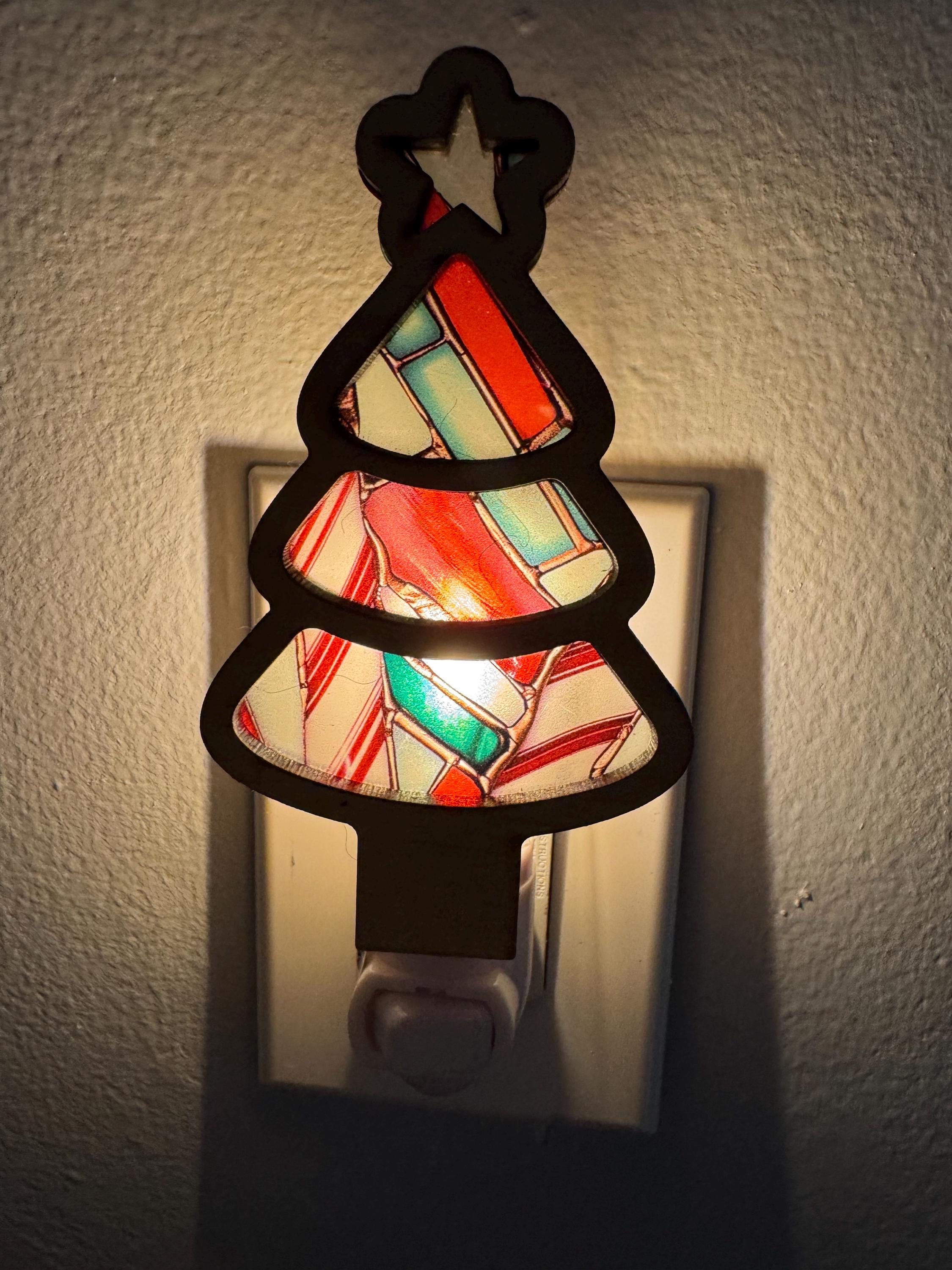Add a festive glow to your home with one of these charming Christmas night lights. Made from two layers of wood with a colorful flexible acrylic layer in between, it creates a warm, cheerful light perfect for the holiday season.