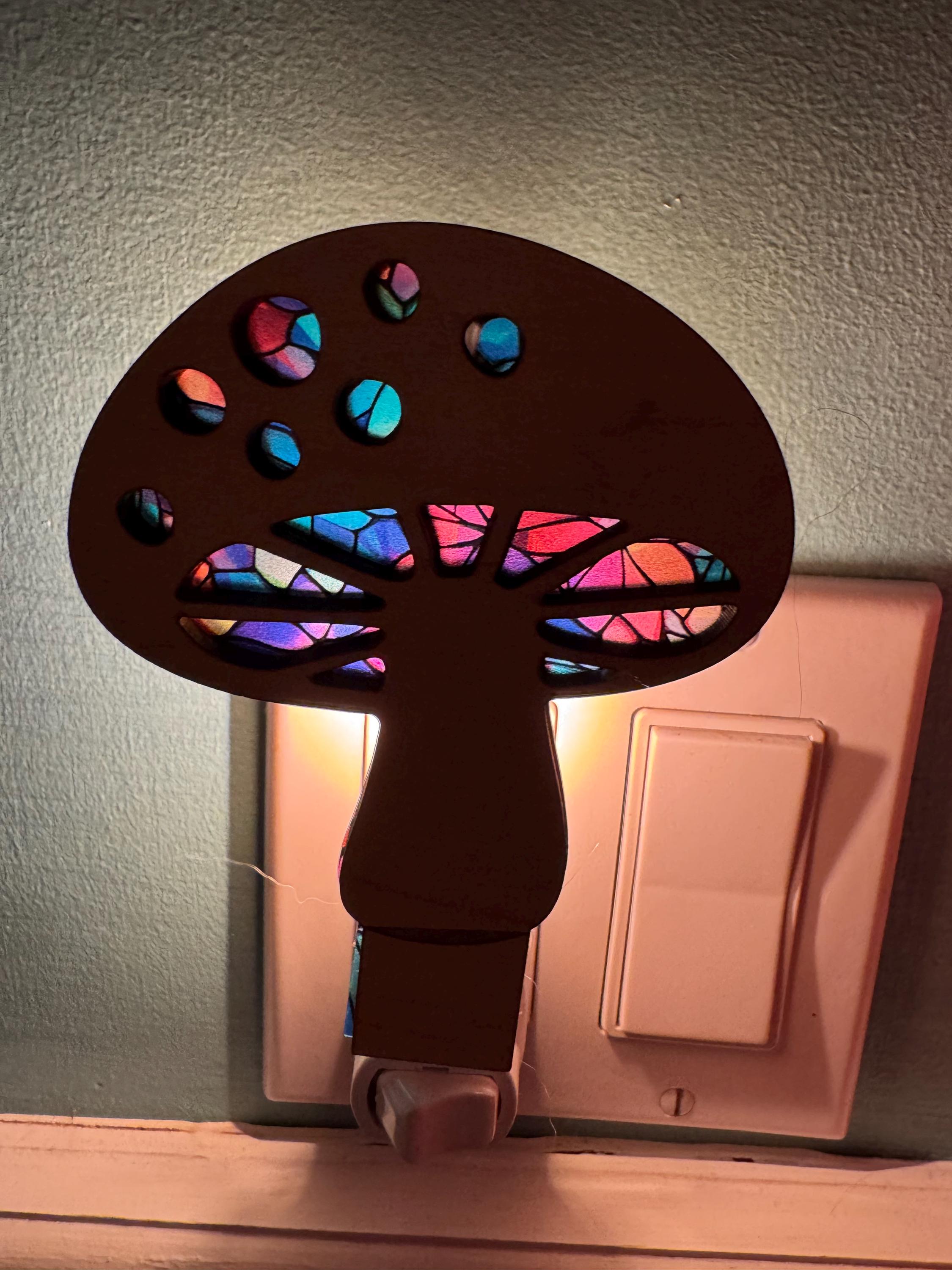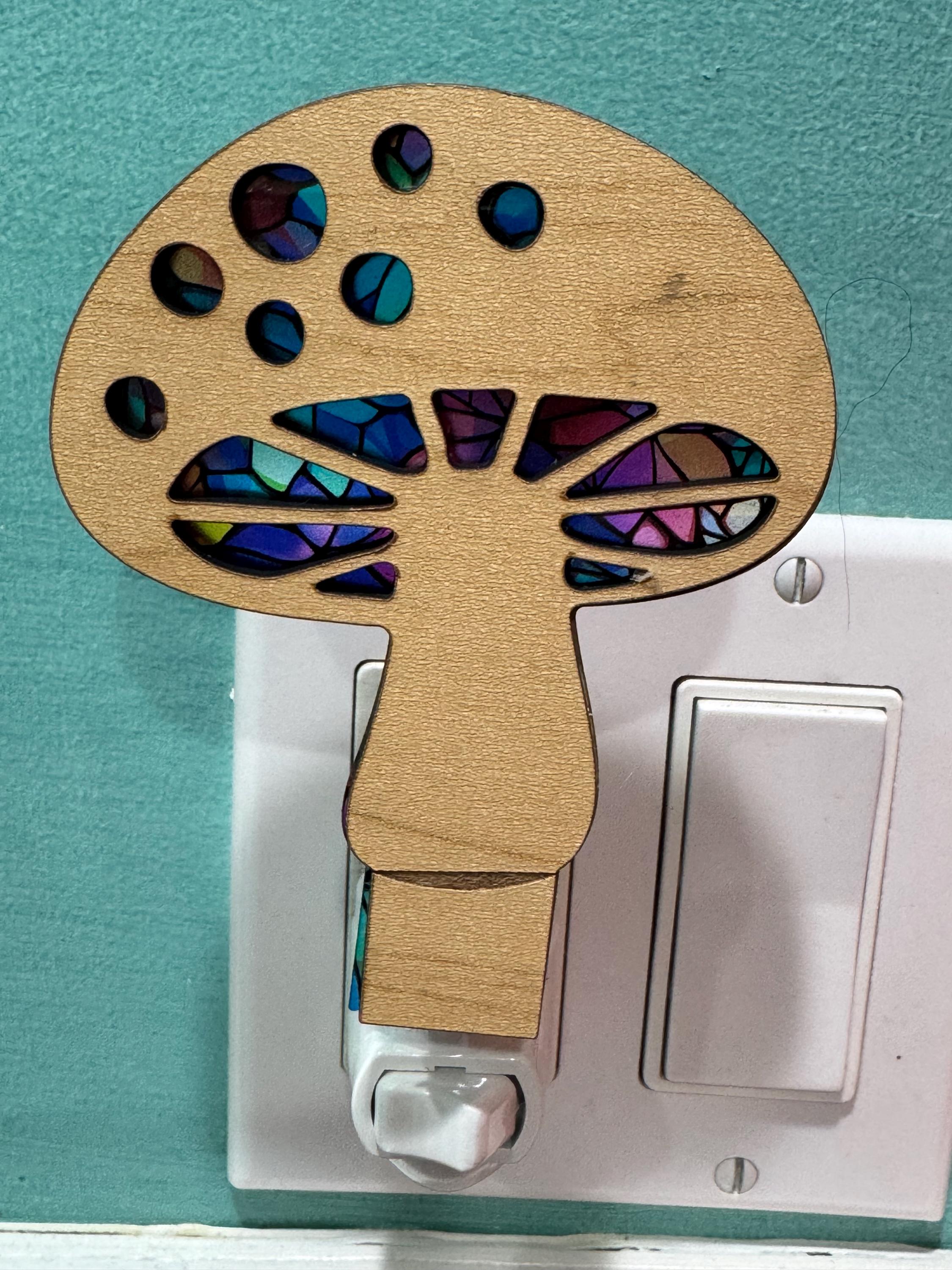 The nightlight is 3 layers, two layers of wood with a thin layer of acrylic in between. The acrylic in the middle is a transparent bright print for the light to shine through. Acrylic color in the middle will vary but will be multicolor.