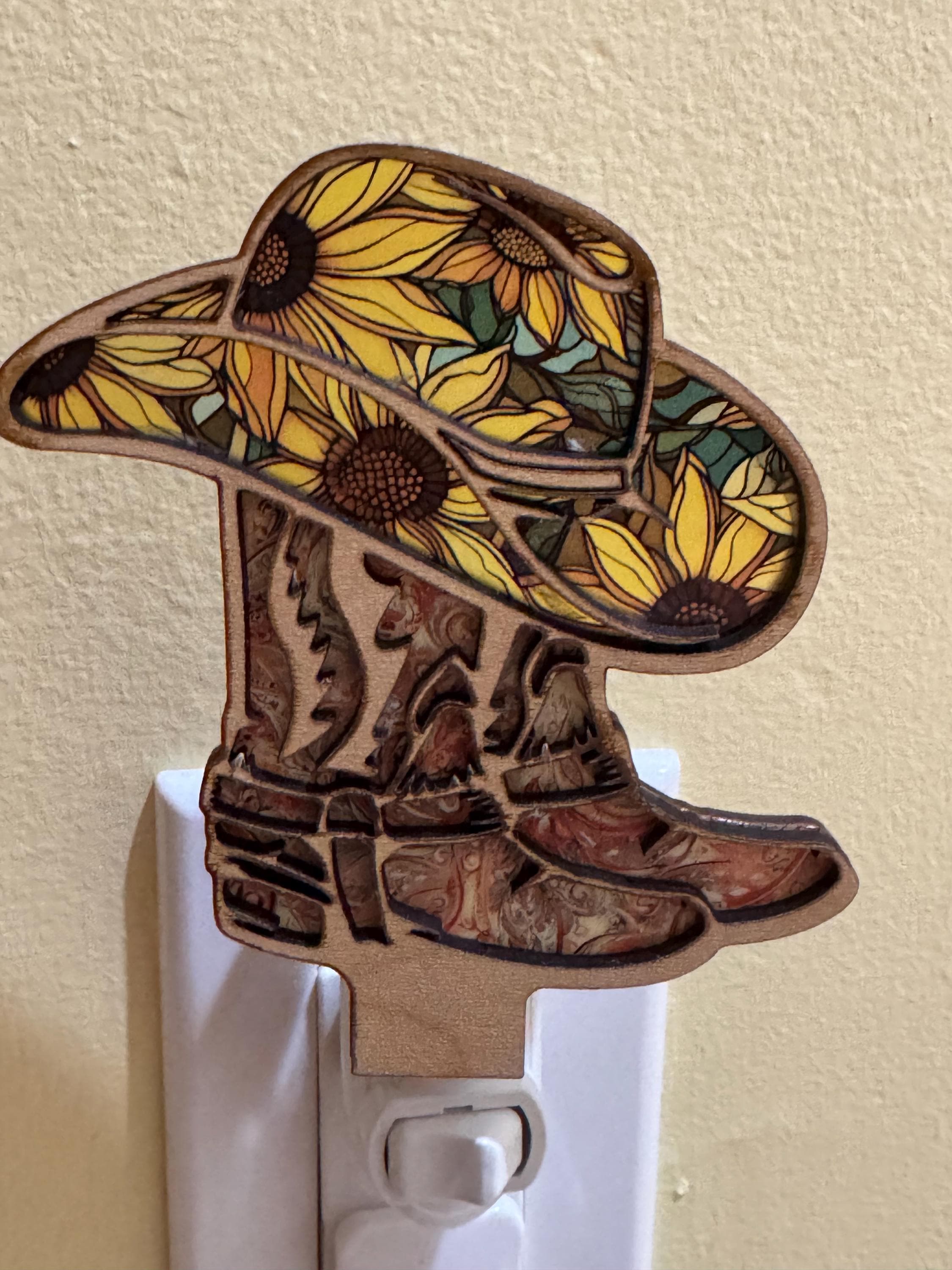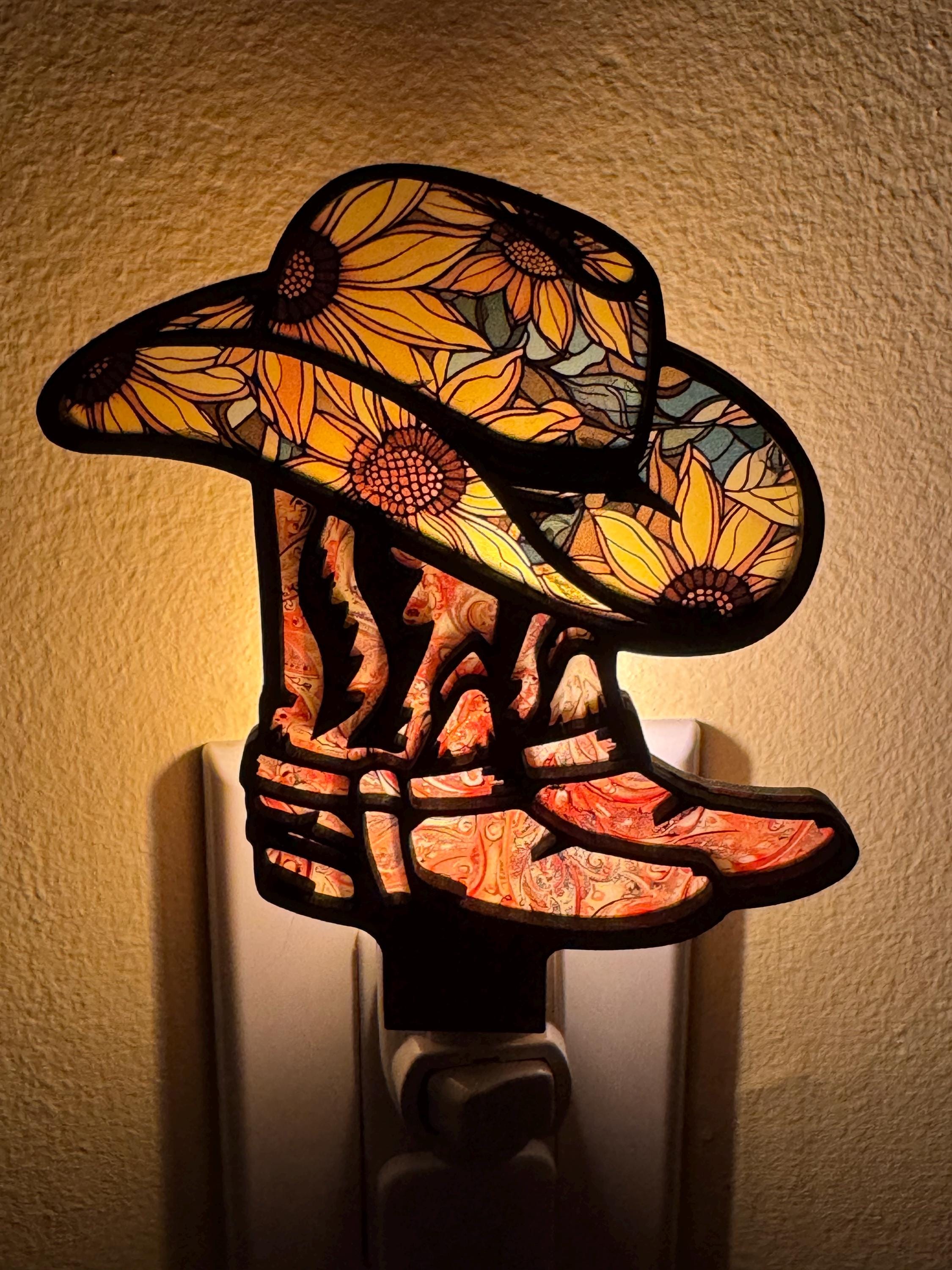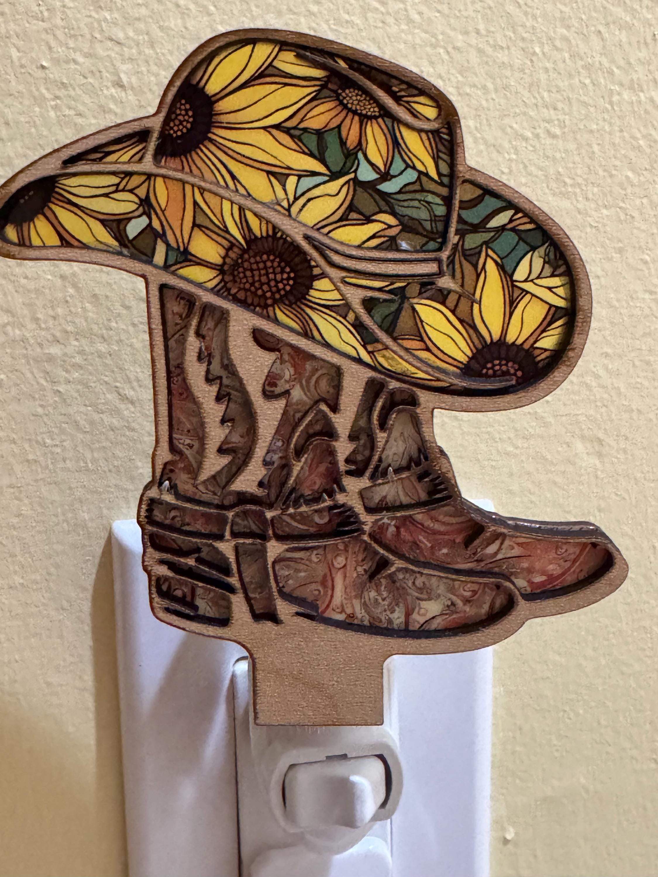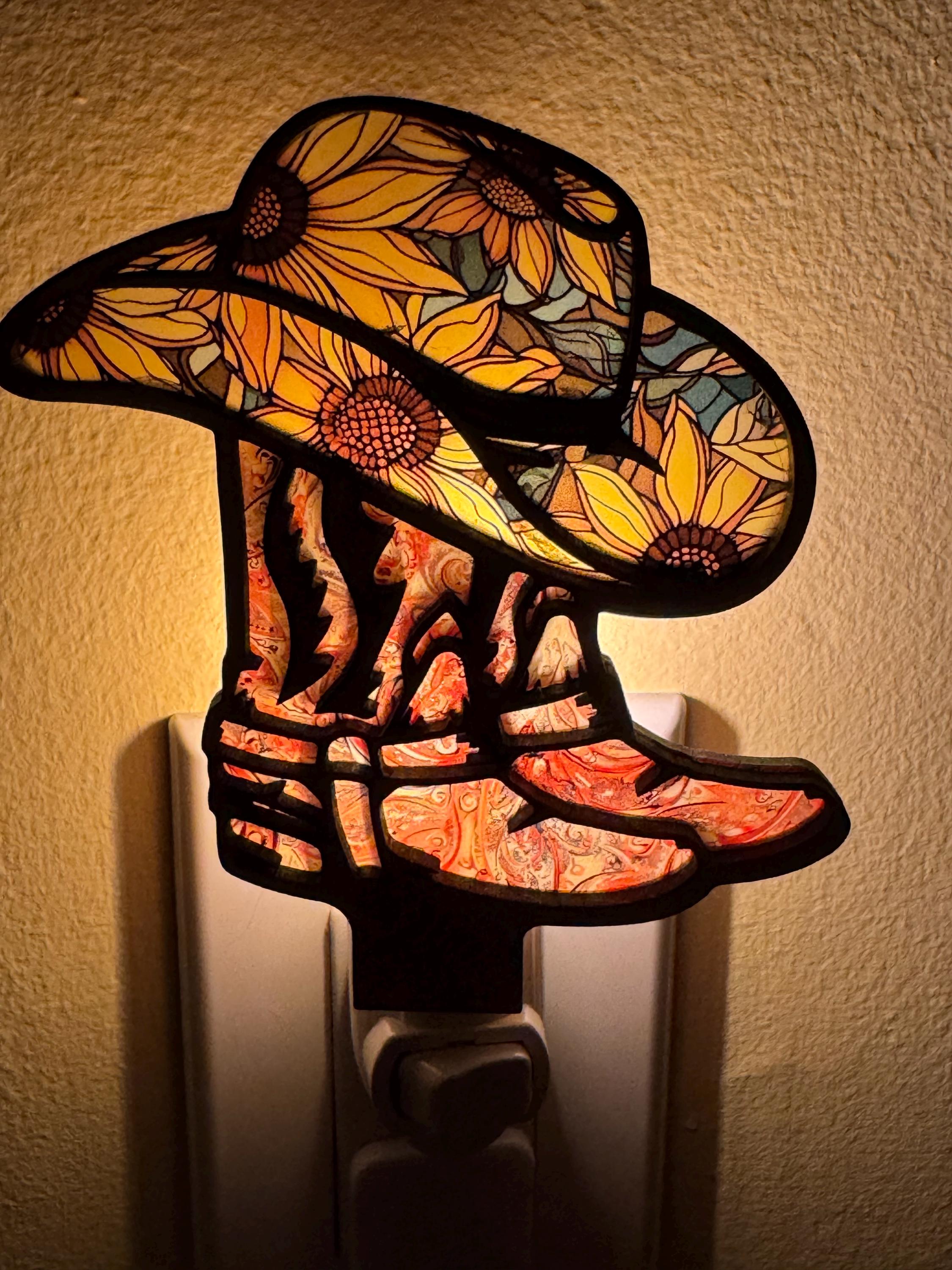 Cowboy Boot night light, Sunflower Night Light, Western bedroom decor, Rustic Home Decor, cowboy hat and boots gift, cowboy nursery decor